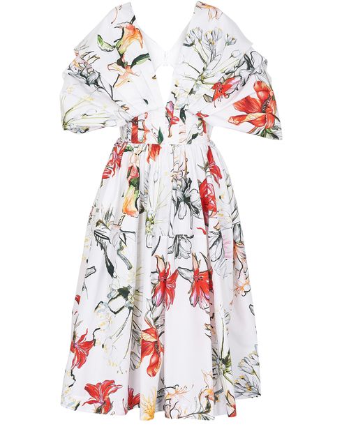 The Cocoon dress by Alexander McQueen is a fluid piece with a stylish floral print and wide sleeves that join to reveal the small of the back.