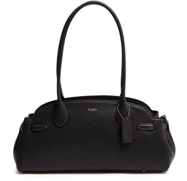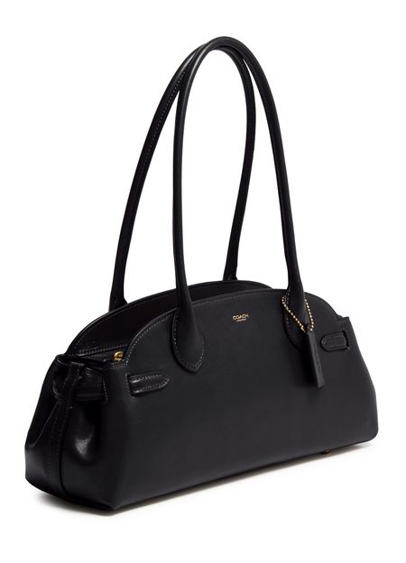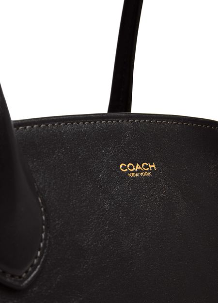 Introducing Coach's Empire carryall 34 glazed leather shoulder bag, a masterpiece of elegance and functionality. Crafted from smooth leather, it features a decorative label with an embossed "Coach" logo. The double handles and zipper closure ensure practicality, while the gold finish adds a touch of sophistication.