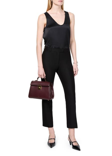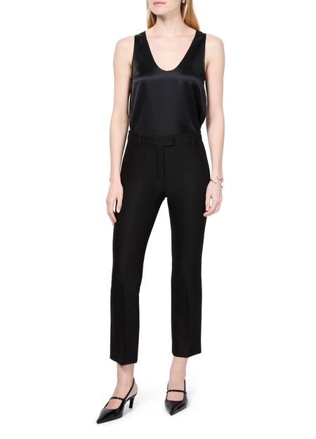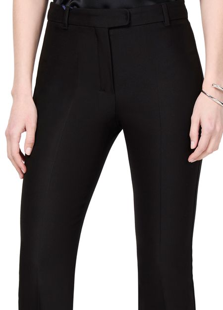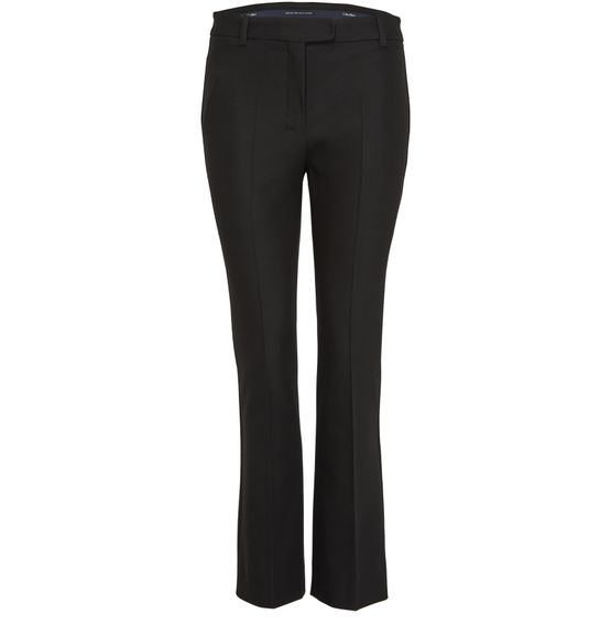 • Description : buttoned and concealed zipper closure, belt loops, back darts, appliquéd logo, visible stitching, ankle length, formal pants, belted waist, slim fit, high-waisted fit.
