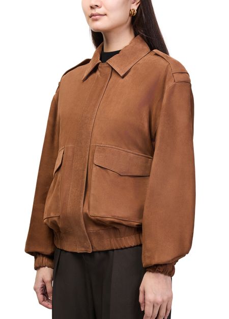 Reveal Arma's Halti suede jacket, a short, long-sleeved piece crafted from supple suede. The concealed zipper closure and flap pockets add a refined touch, while the two front pockets offer practicality. This versatile jacket transitions seamlessly from casual outings to elevated occasions, making it a modern wardrobe essential.