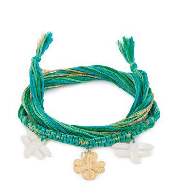 This bold piece is by Aurélie Bidermann. Aurélie Bidermann's Honolulu bracelet is a knotted wreath embellished with golden details, including a four leaf clover.