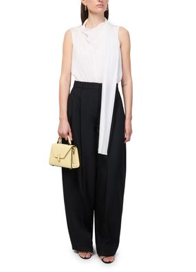 Reveal Valextra's Iside micro bag, crafted from grained leather with a refined gold clasp and gold finish. The single handle and thin, adjustable strap offer versatile styling, while visible stitching and interior patch pockets highlight thoughtful design and functional elegance.