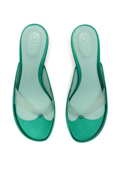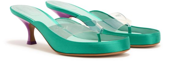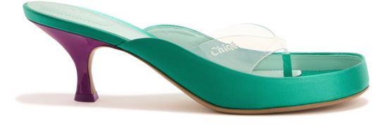 Discover Chloé's medium heel junie sandals, a refined take on modern footwear. These open, round-toe stilettos feature contrast details and a very thin sole for a sleek silhouette. The tone-on-tone lining and embossed logo on the inside add a subtle signature touch, perfect for elevating any ensemble.