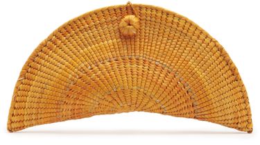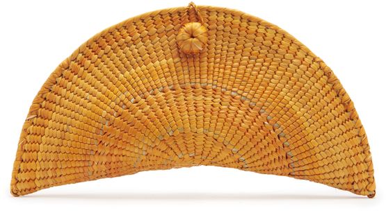 The large Taco woven palm bag, which is carried in your hand, has an old-fashioned basket feel. This creation by Alma sets the tone for a refined, feminine look.