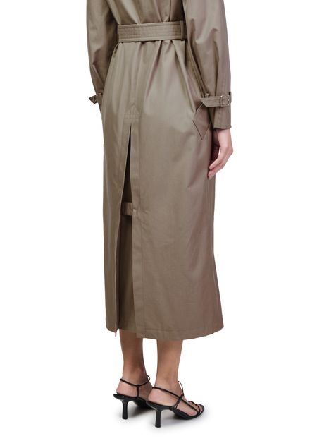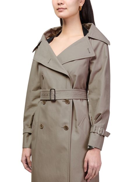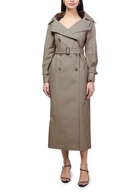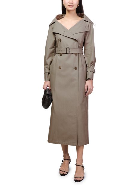 Reveal Max Mara's long belted trench coat, a refined silhouette featuring a classic collar, double-breasted button fastening, and practical side pockets. The tailored fit and elegant length offer timeless appeal, while the belted waist ensures versatile styling for both sophisticated and everyday looks.