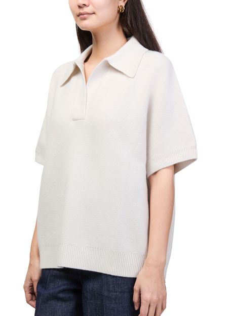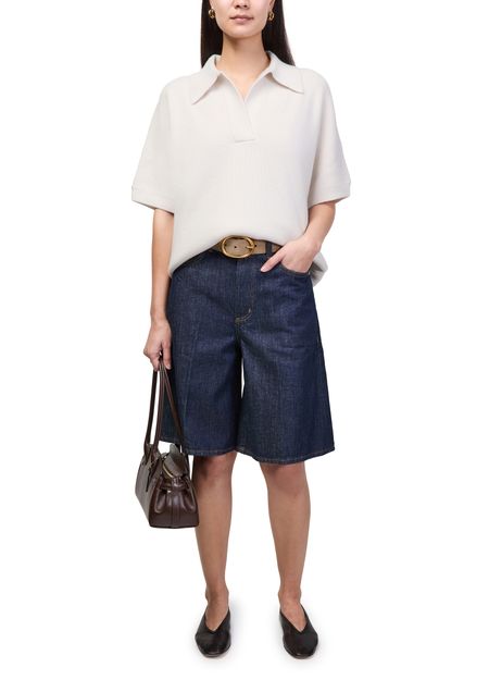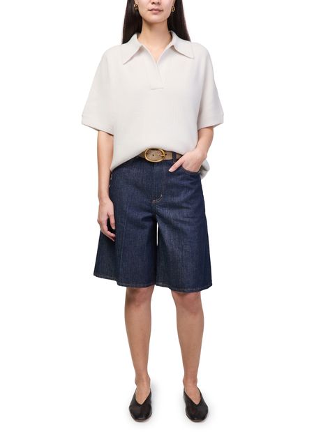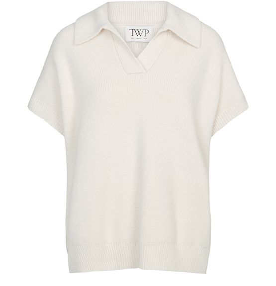 Reveal TWP's loose-fitting short-sleeved polo shirt, featuring a refined V-neck and relaxed silhouette. The soft fabric and short sleeves offer effortless comfort, making this top a versatile choice for both casual and elevated looks. Pair it seamlessly with tailored pants or your favorite denim.