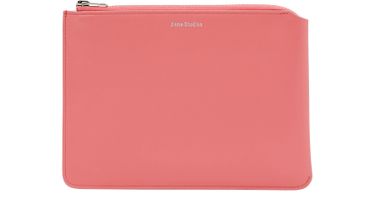 Acne accessories such as the Malachite clutch mix minimalism with exceptional craftsmanship. Marked by its round-cornered and cut corner design, this accessory is available in vibrant colors. Its leather texture bears the fashion house's logo stamped on the top in golden letters, adding a sophisticated touch.