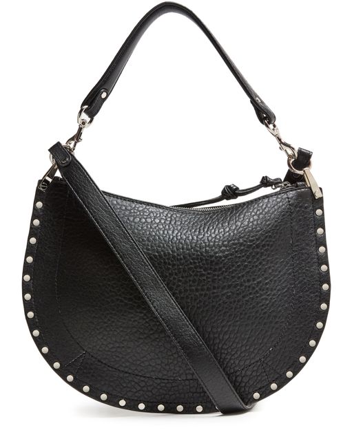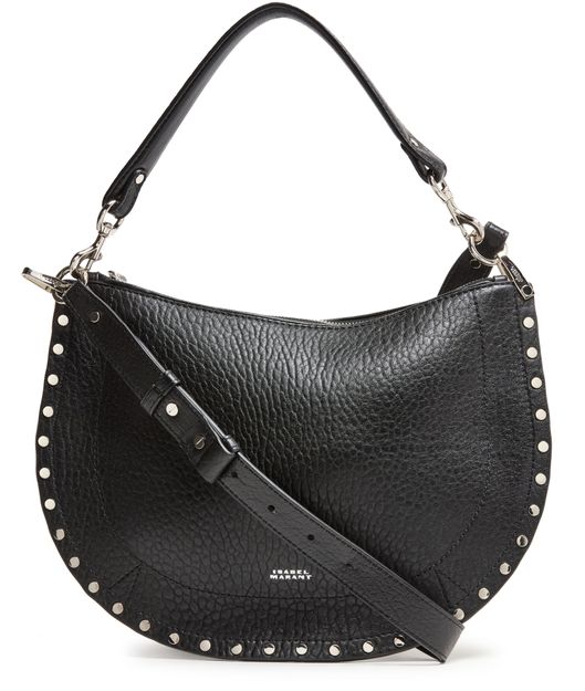 Reveal Isabel Marant's Oskan soft zip bag, a masterpiece of grained leather craftsmanship. This shoulder bag features a single handle and an adjustable, detachable strap for versatile wear. Adorned with studded details and a front logo, it offers a single compartment with an interior pocket, all secured by a zipper closure.