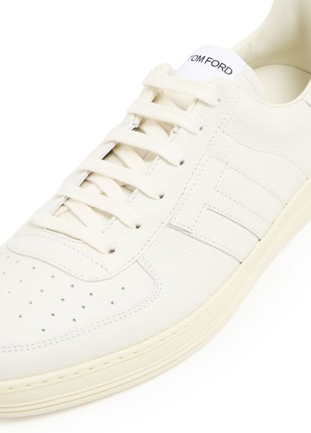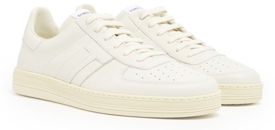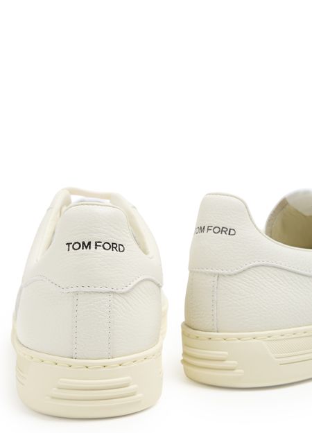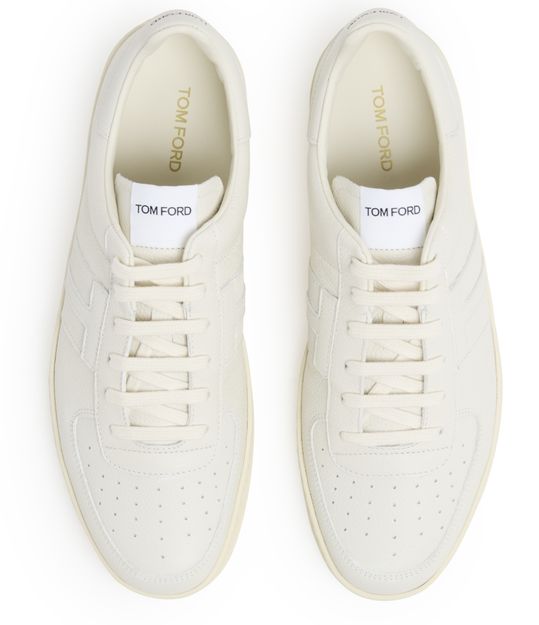 Tom Ford Distribution's Radcliffe sneaker showcases a pull-on design with a front logo and a printed logo that exudes sophistication. Crafted from grained leather, it features visible stitching and a platform sole for added height. The round toe and logo-printed insole ensure comfort, making these sneakers a stylish choice for any occasion.