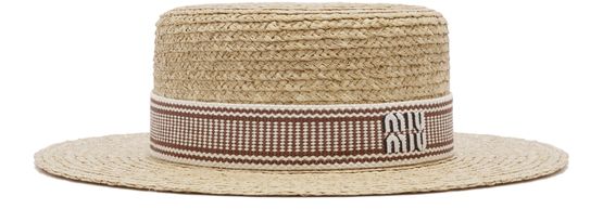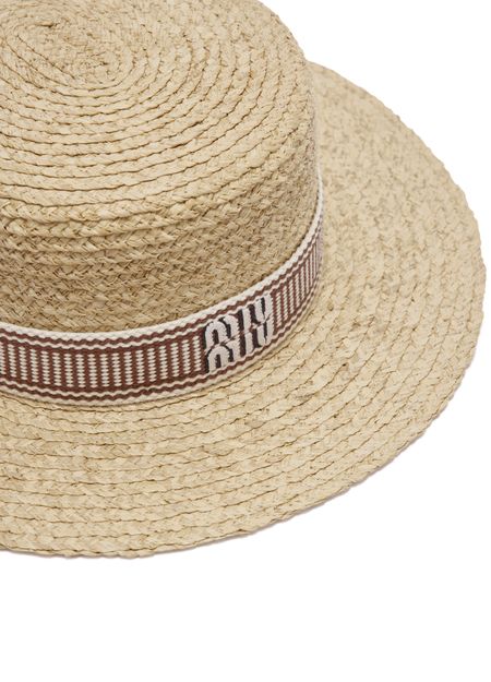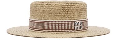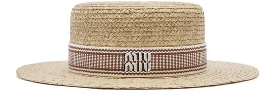 Discover Miu Miu's Raffia straw hat, featuring a round crown and wide brim for a refined silhouette. Crafted from natural straw, this piece offers effortless style and sun protection. Subtle detailing ensures it pairs seamlessly with both relaxed and sophisticated ensembles.