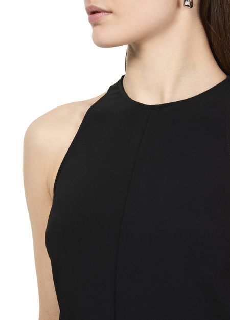 Courrèges's Signature A-line dress showcases a chic mini silhouette with a sleeveless design and a classic crew neck. Its playful charm is enhanced by visible stitching and two front welt pockets, making it both stylish and practical. Embrace effortless elegance with this versatile piece that transitions seamlessly from day to night.