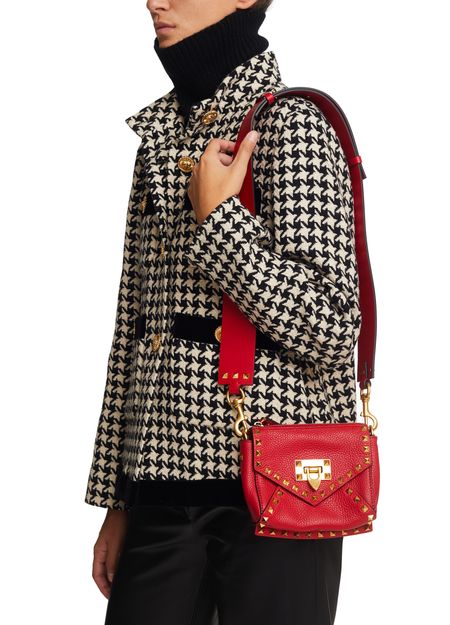This Valentino Garavani S shoulder bag reflects all the Italian elegance of this fashion house. Creative director Pierpaolo Piccioli echoes this collection's signature studs here, along with iconic red leather. We love the offbeat details on this piece, such as the black lanyard and oversized shoulder strap. This mini bag will have maximum impact with black skinny pants and a pair of cowboy boots.