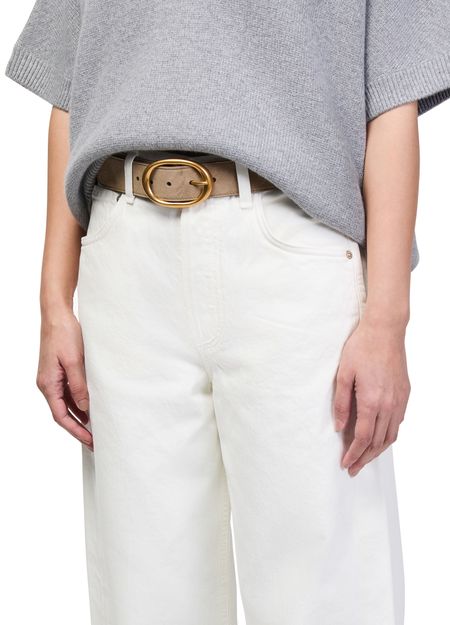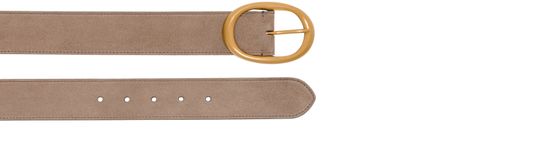 Reveal TWP's suede belt, crafted with a refined adjustable clasp and finished with gold-tone hardware. The supple suede material and elegant buckle elevate any look, while its hip-worn design ensures versatile styling for both casual and sophisticated ensembles.