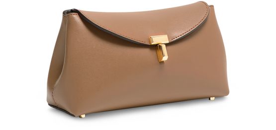 Reveal Toteme's T-Lock mini leather pouch, crafted from smooth leather. The visible stitching and metallic front logo highlight its modern appeal, while the twist lock and flap closure secure essentials in a single compartment with an interior pocket for effortless organization.