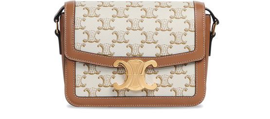 The Teen Triomphe bag with contrasting borders and the emblematic Celine brand motif is an iconic piece in the collection. The link clasp forming the logo of the brand with a metal finish at the front completes this bag.