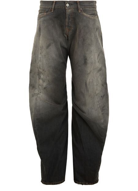 Description : buttoned and concealed zipper closure, belt loops, back leather logo, visible stitching, ankle length, five-pocket style, denim, loose fit, low-waisted fit.