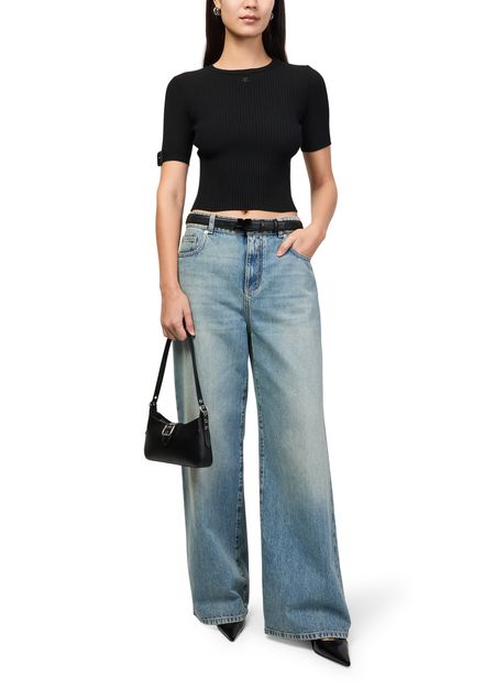 Reveal Courreges's AC leather belt, crafted from smooth leather and finished with an adjustable clasp for a tailored fit. The refined design and subtle logo detail make it a versatile accessory, seamlessly elevating both casual and formal ensembles with understated sophistication.