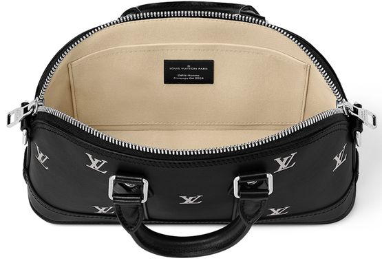 Pharrell Williams, Creative Director for menswear, brings his LV Blason calfskin to this Alma East-West bag, adorning it with a refined new interpretation of the iconic LV initials. A compact and stylish bag, the Alma East West’s sleek rectangular shape and the silver LVs, embossed and printed on fine-grained black leather, create an up-to-the-minute feel.