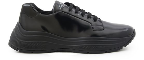 Made from calfskin, these Prada trainers are set apart by their mirrored look and the hot-pressed logo on the tongue. These trainers will ensure your feet are elegantly dressed. Pair them with a long jacket, a fitted roll neck jumper and straight leg jeans or trousers.