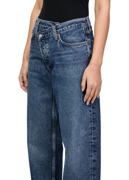 Reveal Agolde's Arc crossover jeans, crafted from premium denim with a modern ankle length. The buttoned zipper closure and visible stitching add a refined touch, while front and back pockets ensure practicality. Logo at the back and belt loops complete this versatile piece for effortless, everyday style.