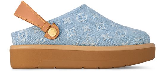 Iconic Monogram denim complements the relaxed style of the Aspen platform clog. This on-trend model comes with a removable back strap in emblematic Louis Vuitton natural leather, which is secured with engraved, gold-tone studs. A chunky rubber outsole completes this comfortable, easy-to-wear design.