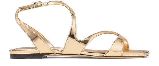 Jimmy Choo's Ayla flat sandals combine elegance and comfort with their square open toe design and chic ankle strap featuring a buckle. The small heels add a subtle lift, while the visible stitching and golden finishes elevate the overall look, making these sandals perfect for both casual outings and sophisticated events.
