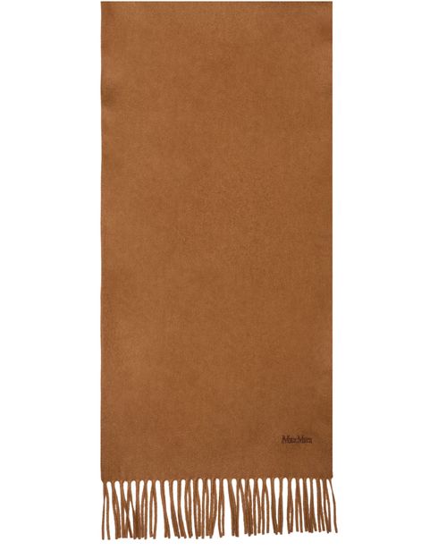 Discover Max Mara's Baci scarf, a perfect blend of elegance and style. This exquisite piece features fringed edges and an embroidered logo, adding a touch of sophistication to any ensemble.