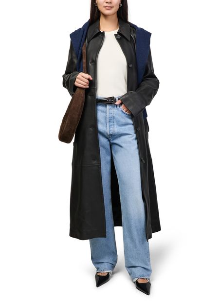 Reveal Toteme's belted leather coat, crafted from smooth leather for a refined silhouette. The long, tailored design features a classic collar, button fastening, and long sleeves, offering both elegance and versatility. Perfect for elevating any look, this piece transitions seamlessly from day to evening.