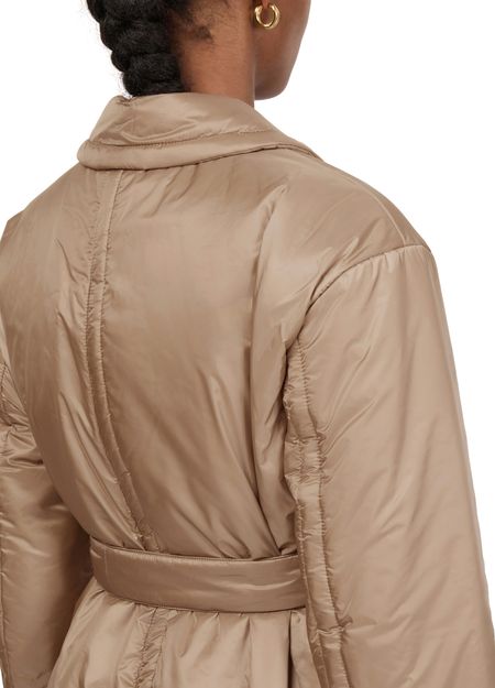 Unveil Max Mara's Calla coat - THE CUBE, a masterpiece of elegance. This regular-fit, short silhouette with a padded texture offers a polished look. Featuring a double-breasted closure, collar neckline, and long sleeves with side welt pockets, it redefines the classic belted coat with its modern, versatile charm.
