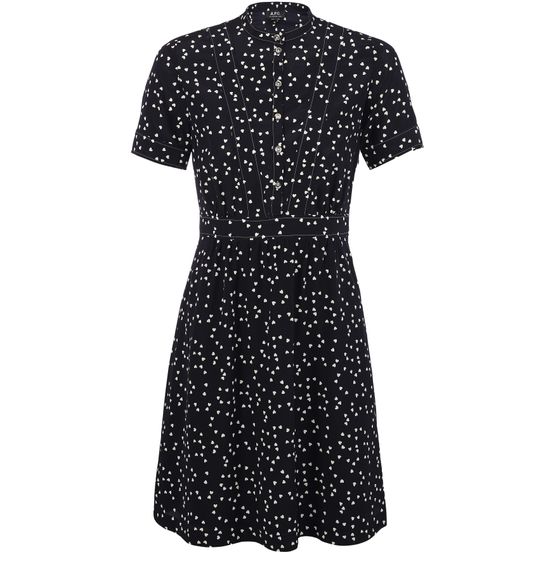 With the Camille dress, A.P.C. offers a flowing piece with a romantic spirit. It combines a buttoned collar, short sleeves and a flared petticoat in a heart-shaped fabric.