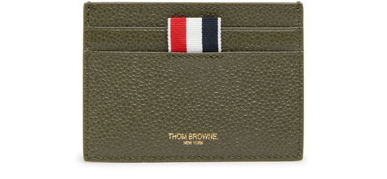 Thom Browne brings the iconic custom touch of its famous tricolor ribbon to this card holder. This leather piece is characterized by the high quality of its finishes and inscription on the front.