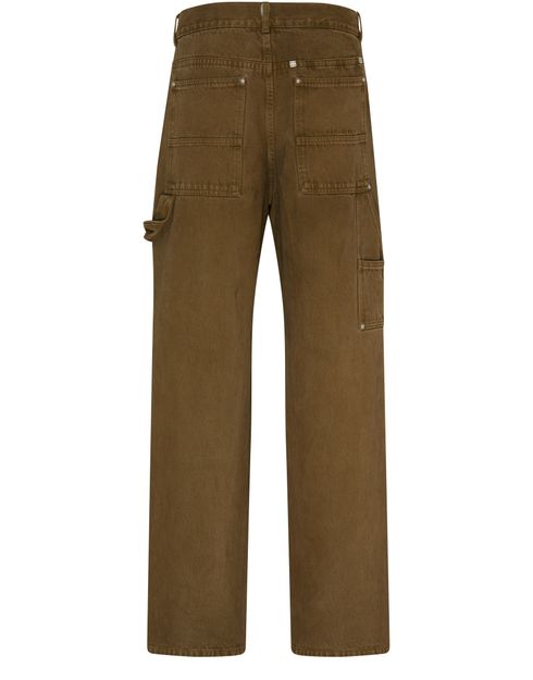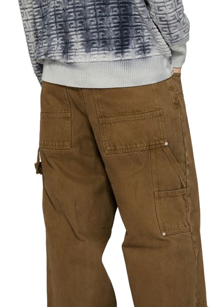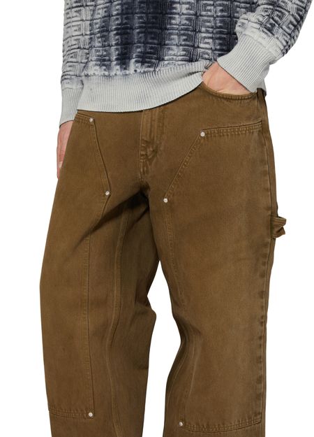 Givenchy'sCarpenter pants feature a front logo and an engraved logo on the back label. They are designed with side pockets and a back patch pocket for added convenience. The pants also have belt loops and a concealed zipper closure for a sleek finish. Perfect for a stylish and practical look.