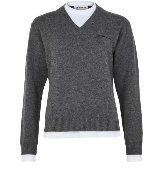 Unveil Miu Miu's cashmere v-neck sweater, crafted with a ribbed texture that exudes sophistication. This regular fit knitwear features long cuffed sleeves, offering a timeless elegance. Pair it effortlessly with your favorite jeans or a sleek skirt for a versatile, stylish look.