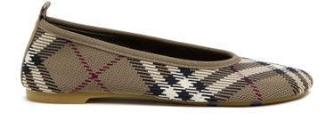 Burberry's Check knit Baby ballet flats are charming ballet pumps designed for little feet. Featuring visible stitching and a round toe, these flat shoes ensure comfort and style. A leather loop at the back allows for easy slipping on and off, making them perfect for playful adventures.