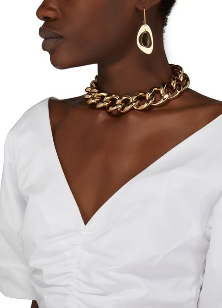 Isabel Marant Choker is a stylish accessory that features a cable link chain and a built-in clasp at the back. With a non-adjustable length, this choker is perfect for adding a touch of elegance to any outfit. Its simple yet sophisticated design makes it a versatile piece that can be worn for any occasion.