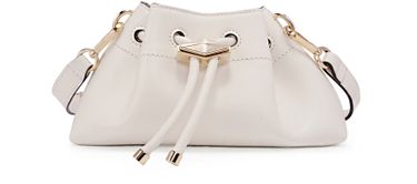 Jimmy Choo's Cinch S bucket bag is a stylish accessory perfect for any occasion. Featuring a unique handle and fine shoulder strap, it offers versatile porté croisé and porté épaule options. With visible stitching, an engraved logo at the front, and golden finishes, it closes securely with a drawstring and clip.