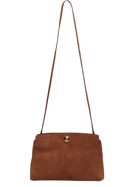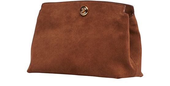 Reveal Liffner's suede clutch, a statement piece with a thin strap and refined metal finish. Visible stitching and a snap-button fastening add a modern touch, while the versatile design transitions seamlessly from day to night. Experience understated sophistication in every detail.