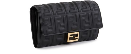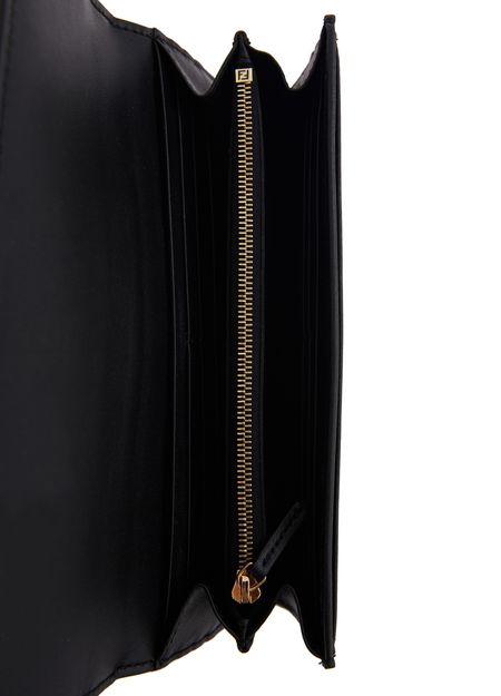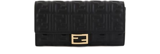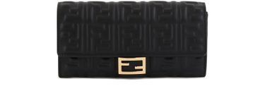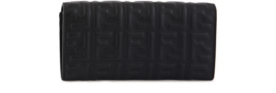 This Continental wallet by Fendi reflects the iconic style of the Fendi brand. An accessory with an elegant clasp, with the embossed logo all around.