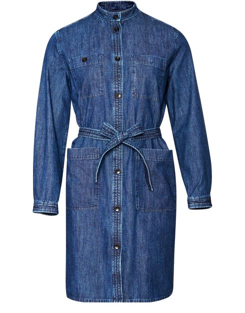 A.P.C. has designed the Corine dress. With its long sleeves, marked-out waist and short cut, this fine denim piece is a timeless example from the female wardrobe.