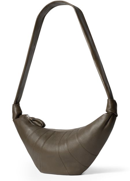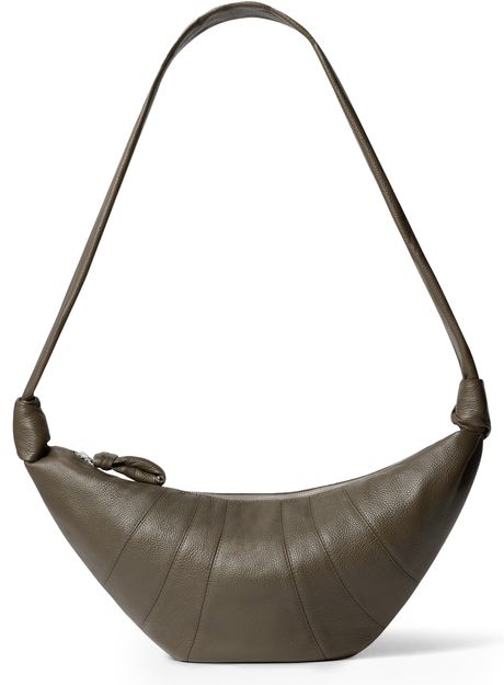 Reveal Lemaire's grained leather shoulder bag, crafted with a single handle and padded texture for a refined silhouette. Visible stitching and a secure zipper closure highlight the meticulous attention to detail, making this piece a modern essential for any wardrobe.