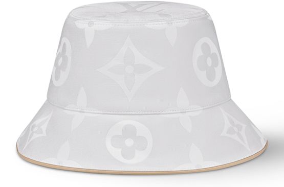 Stylish and versatile, the reversible Dailygram bucket hat is sure to become an everyday essential. One side features a tone-on-tone XXL Monogram jacquard weave for a contemporary signature look. Turned inside out, it reveals a gold embroidered Louis Vuitton signature for a more classic feminine effect. Natural cowhide piping adds a luxurious finishing touch.