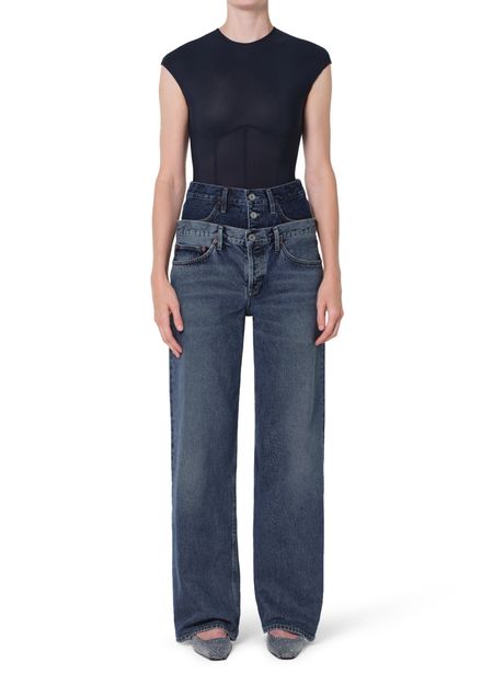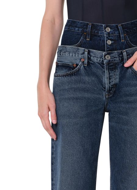 Reveal Agolde's high-waisted faded denim jean, a perfect blend of style and comfort. With its ankle-length cut and button fastening, this piece features visible stitching and practical back patch pockets. Ideal for any occasion, it effortlessly transitions from casual to chic with ease.