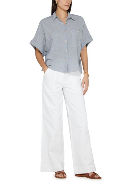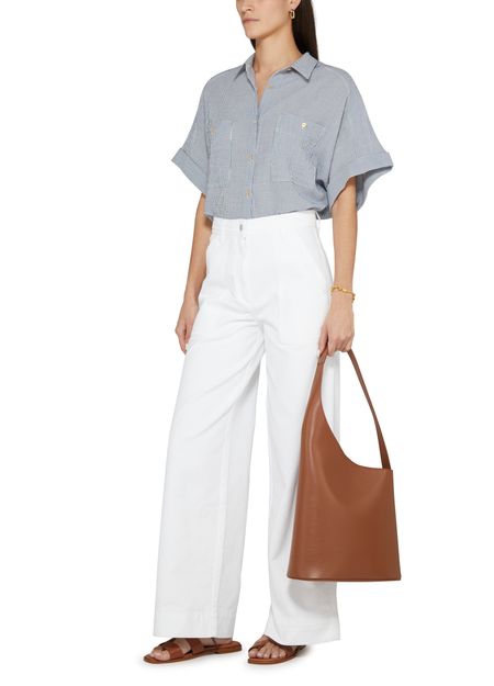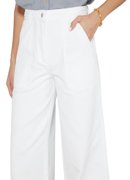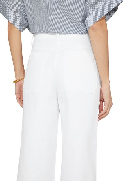 Sessùn's Ernest pants feature a high-waisted fit that accentuates your silhouette. With a flared cut, they offer a stylish twist. The buttoned and concealed zipper closure ensures a sleek look, while belt loops and side pockets add practicality. A back patch pocket showcases the logo at the back label, completing the design.