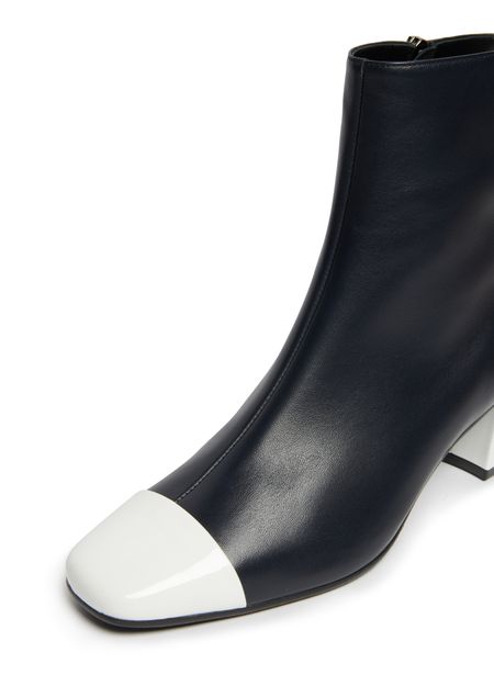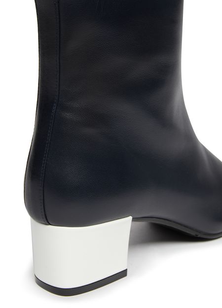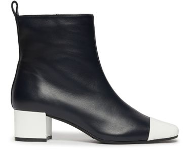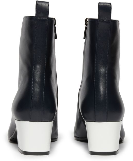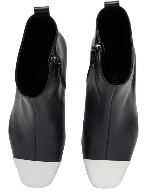 • Description : Square toe, smooth leather, side zipper, very thin sole, block heel.