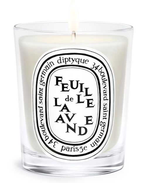 The Feuille de Lavande (Lavender Leaf) candle evokes a summer sky, and lavender bushes perched on the hillsides of Haute Provence.