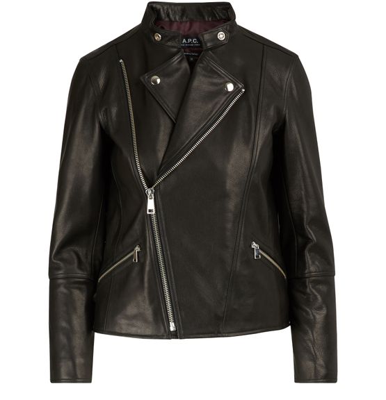 With this Florence jacket, A.P.C. revisits the biker jacket, an emblematic piece of rock 'n' roll style, by infusing the classic design with the Parisian elegance that the fashion house is famous for. This design mixes a fitted cut with refined detail, such as a collar strap closed by a snap. For a distinctive, contrasting look, pair with the Cece pants from the same collection.