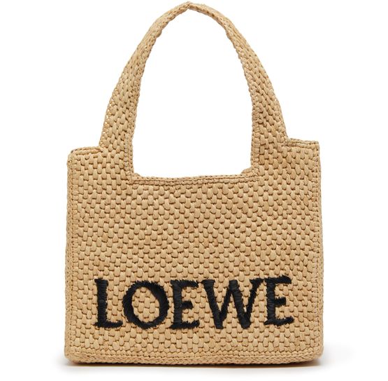 Loewe's Font tote mini bag is a chic accessory with a front logo detail. It has a single compartment and double handles for easy carrying. This hand carried bag also comes with a thin strap that can be worn on the shoulder or detached for a different look.