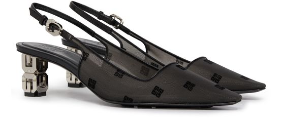 Givenchy's G-cube slingback pumps are a stylish choice for any fashion-forward woman. These pumps feature a square heel and an open round toe, giving them a modern and edgy look. The buckled ankle strap adds a touch of sophistication to these versatile shoes, making them perfect for any occasion.
