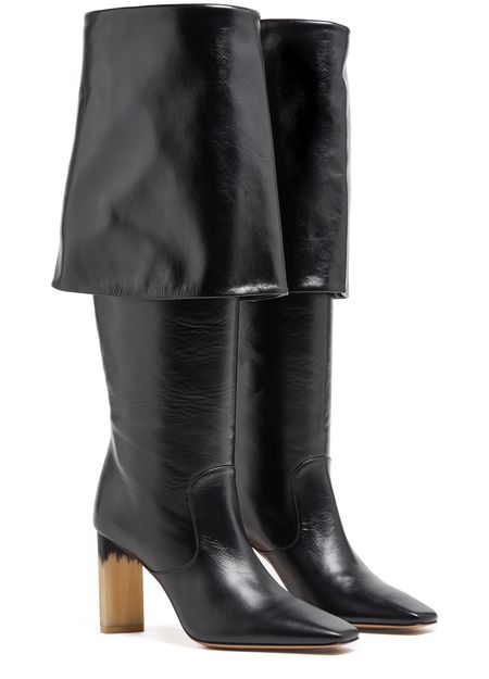 Chloé's Georgia boots showcase a high-top upper adorned with visible stitching, blending sophistication and contemporary style. The high heel elevates your look, while the square toe adds a modern twist. With a closed design, these boots offer both elegance and comfort, making them the perfect choice for any fashion-forward wardrobe.