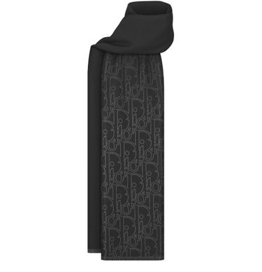 Introducing Dior's Black and white gradient Dior Gravity jacquard, accented with elegant fringed edges. This exquisite piece encapsulates modern elegance in every detail, making it a perfect addition to any sophisticated wardrobe.